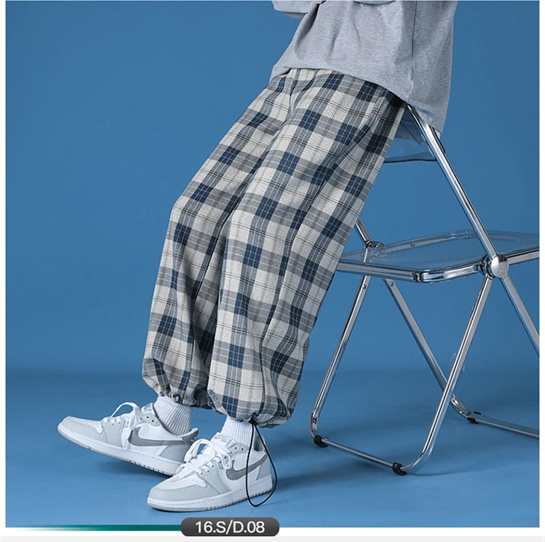 Be the first to review “Men New Polyester Loose Japan Harajuku style Grid Wide Pants Men Casual Drawstring Elastic Leg opening Ankle Length Pants Men” Cancel reply